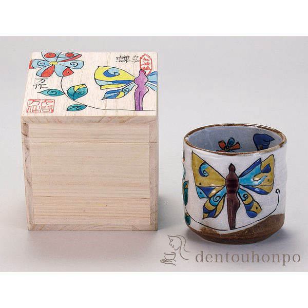 九谷焼 色いろカップ 蝶 ( 和窯 色いろカップ 木箱名入れ有料 退職祝い 定年 焼酎グラス ビアカップ ビールグラス フリーカップ グラス )