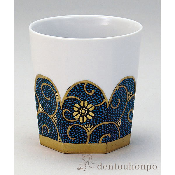 「送料無料」 九谷焼 ロックカップ 白九 青粒鉄仙 ( 退職祝い 定年 焼酎カップ ビールカップ 保温 保冷 人気 九谷焼 結婚 出産 )