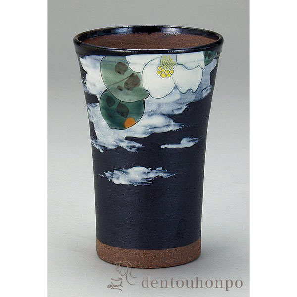 「送料無料」 九谷焼 ビアカップ 白刷毛白椿 350ml ( 退職祝い 定年 タンブラー ビアグラス ビアカップ プレゼント 人気 九谷焼 結婚 )