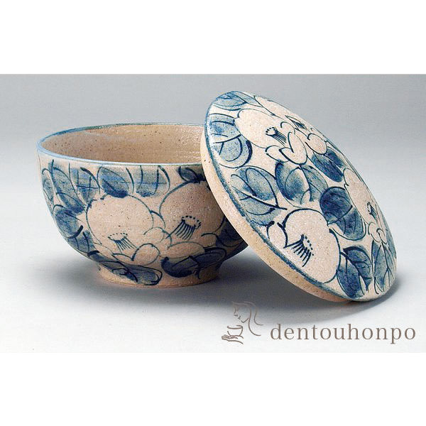 「送料無料」 九谷焼 蓋付レンジ鉢 おひつ 染付椿 ( 和窯 退職祝い 定年 どんぶり 丼 美味しい ふっくら レンジ 九谷焼 結婚 )
