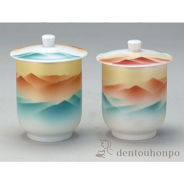 「送料無料」 九谷焼 蓋付組湯呑 曙 ペア ( 木箱名入れ有料 退職祝い 定年 湯呑み 湯のみ セット 湯飲み おすすめ セット 九谷焼 )