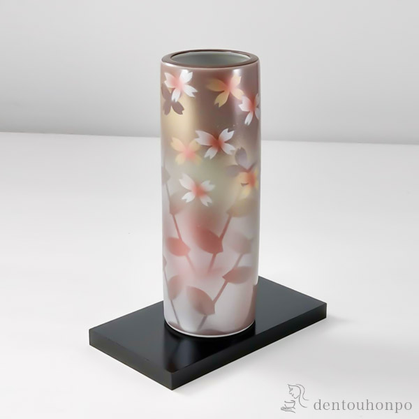 「送料無料」 九谷焼 寸胴 紫花紋 6号 花台付 ( 木札名入れ有料 退職祝い 定年 ガラス フラワーベース 花器 一輪挿し おすすめ )
