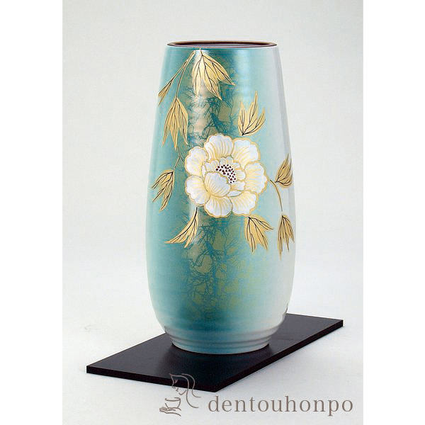九谷焼 寸胴 牡丹 8号 花台付 ( 名入れ有料 退職祝い 定年 ガラス フラワーベース 花器 一輪挿し おすすめ 九谷焼 周年 創立 上場 竣工 )