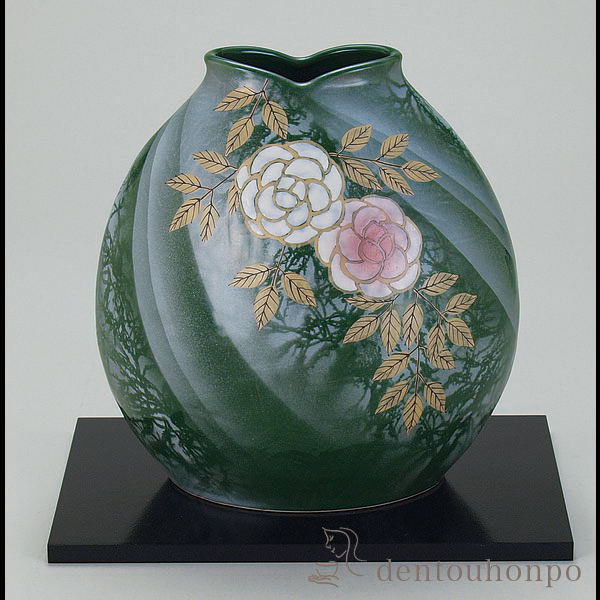 「送料無料」 九谷焼 花瓶 野薔薇 7号 花台付 ( 名入れ有料 退職祝い 定年 ガラス フラワーベース 花器 一輪挿し おすすめ 九谷焼 周年 )