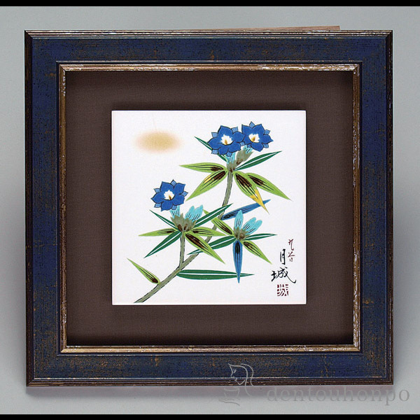 「送料無料」 九谷焼 陶額 リンドウ ( 退職祝い 定年 置物 額飾り 陶板 陶板画 法人 アートパネル 九谷焼 周年 創立 上場 竣工 )