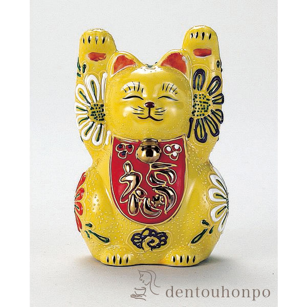 「送料無料」 九谷焼 福万歳招猫 黄盛 3号 ( 木札名入れ有料 退職祝い 定年 置物 幸運 開運 開店祝い 風水 九谷焼 結婚 出産 )