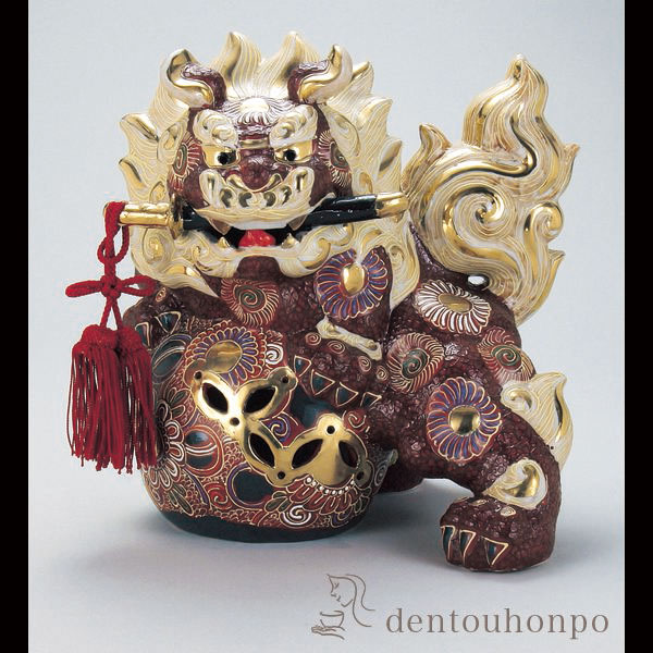 「送料無料」 九谷焼 剣獅子 盛 8号 ( 木札名入れ有料 退職祝い 定年 置物 玄関 受付 風水 幸運 九谷焼 結婚 出産 内祝い 引き出物 )