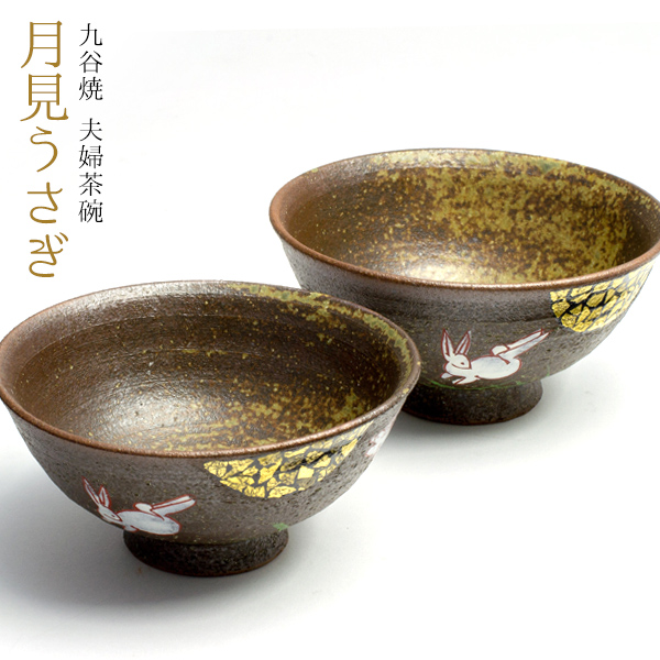 「送料無料」 九谷焼 夫婦茶碗 月見うさぎ ペア 金箔付き 「即日発送対応」 ( あすつく 退職祝い 定年 夫婦茶碗 )