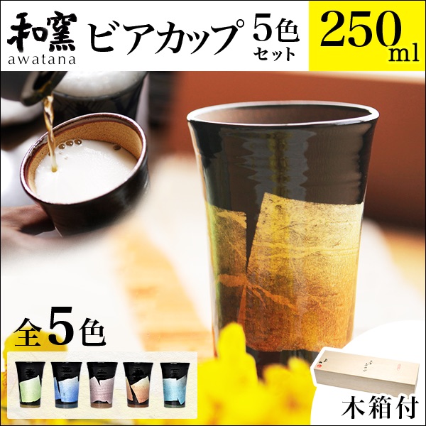 「送料無料」 九谷焼 ビアカップ awatana 銀彩 専用木箱付き 250ml 5色セット 「伝統保証」 「即日発送対応」 ( 和窯 awatana あすつく )