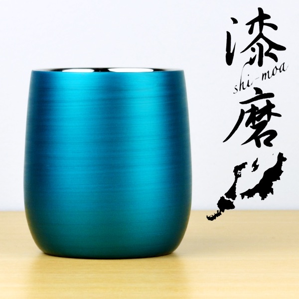 青漆を使用した目の覚めるような色合いが特徴です。モダンなデザインなのでインテリアとして置くだけで絵になります。また、使い込むほどに色味が変化していくので愛着が湧いてきます。ビアカップとしてはもちろんのこと、フリーカップとして普段使いできるカップです。