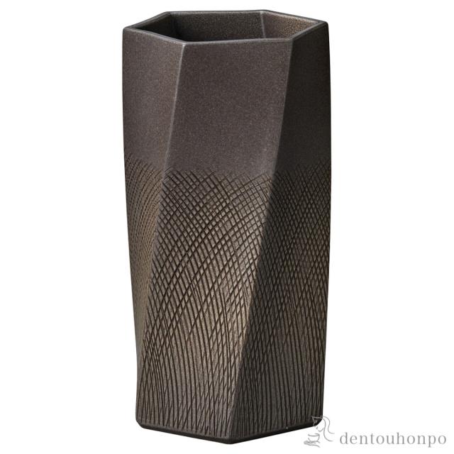 「送料無料」 六角傘立 櫛目ひねり 黒 ( へちもん スリム 玄関 お店 高級 おすすめ 信楽焼 周年 創立 上場 竣工 開店 事務所移転 )