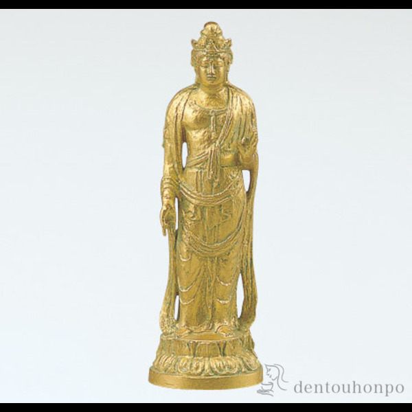 「送料無料」 銅製 聖観世音菩薩 金箔仕上げ ( 木札名入れ有料 仏壇 寺院 仏様 日本 仏具 高岡銅器 法要 メモリアル 法事 祈念 )