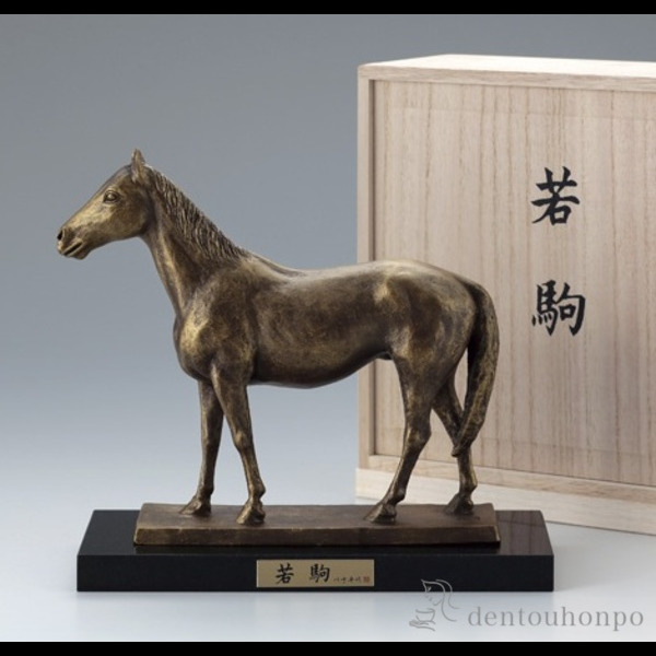 「送料無料」 銅製 若駒 茶金 御影石付き ( 木札名入れ有料 子 辰 龍 午 丑 高岡銅器 結婚 出産 内祝い 引き出物 金婚式 )