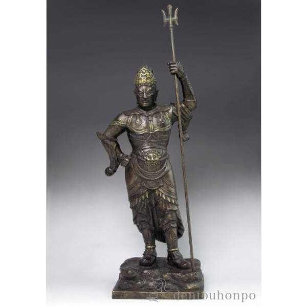 「送料無料」 銅製 毘沙門天立像 塗板付き ( 木札名入れ有料 仏壇 寺院 仏様 日本 仏具 高岡銅器 法要 メモリアル 法事 祈念 弔事 寄進 )