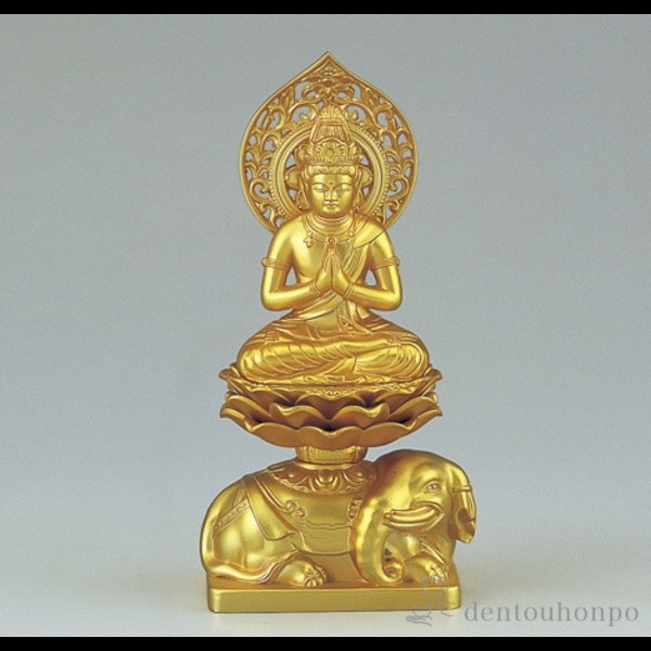 「送料無料」 普賢菩薩 純金メッキ 辰・巳年生まれのお守本尊 ( 木札名入れ有料 退職祝い 定年 仏壇 寺院 仏様 日本 仏具 高岡銅器 )