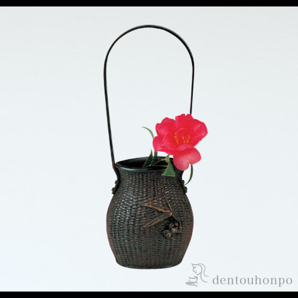 「送料無料」 銅製花瓶 変形網代 ( 木札名入れ有料 退職祝い 定年 花瓶 フラワーベース 花器 仏間 おすすめ 高岡銅器 周年 創立 上場 )