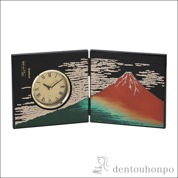 屏風時計 赤富士 黒 ( 名入れ有料 退職祝い 定年 置時計 置き時計 アクセサリー パソコンデスク 人気 山中漆器 結婚 出産 内祝い )
