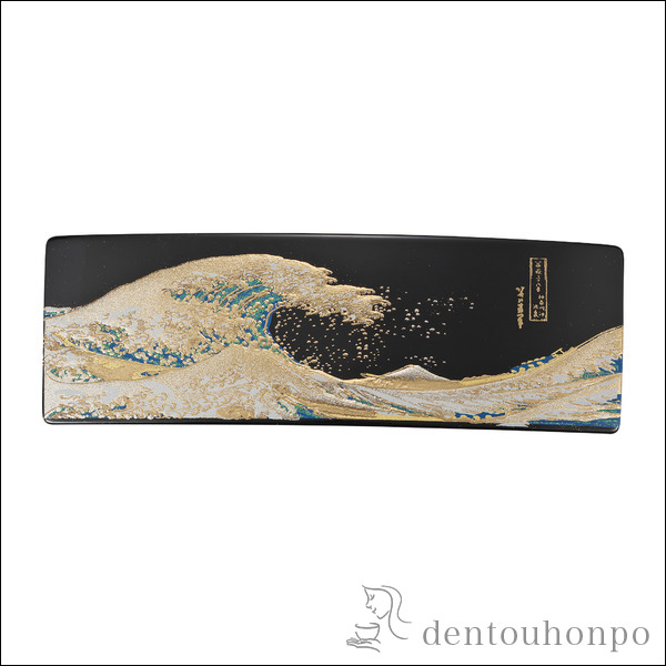 漆芸バレッタ長角 波 黒 大 ( 退職祝い 定年 髪留め 留袖 和装 おしゃれ 日本製 山中漆器 結婚 出産 内祝い 引き出物 金婚式 )