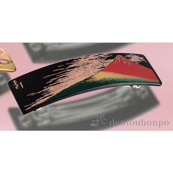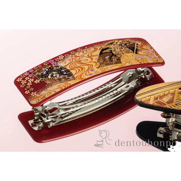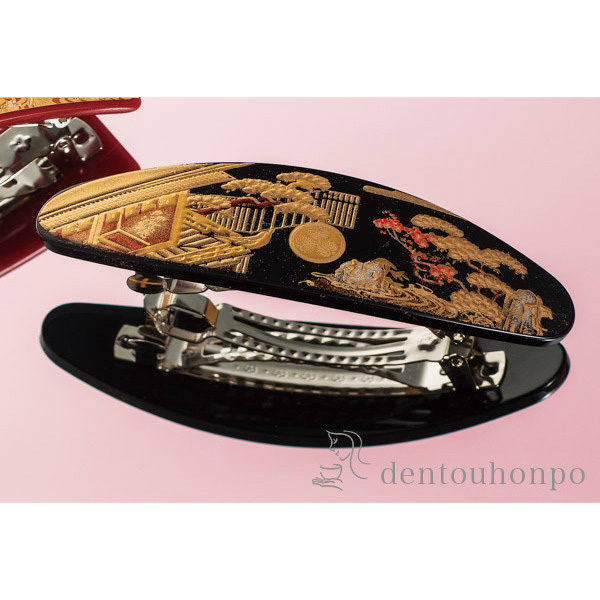 漆芸バレッタ長角 風神雷神 黒 大 ( 退職祝い 定年 髪留め 留袖 和装 おしゃれ 日本製 山中漆器 結婚 出産 内祝い 引き出物 金婚式 )