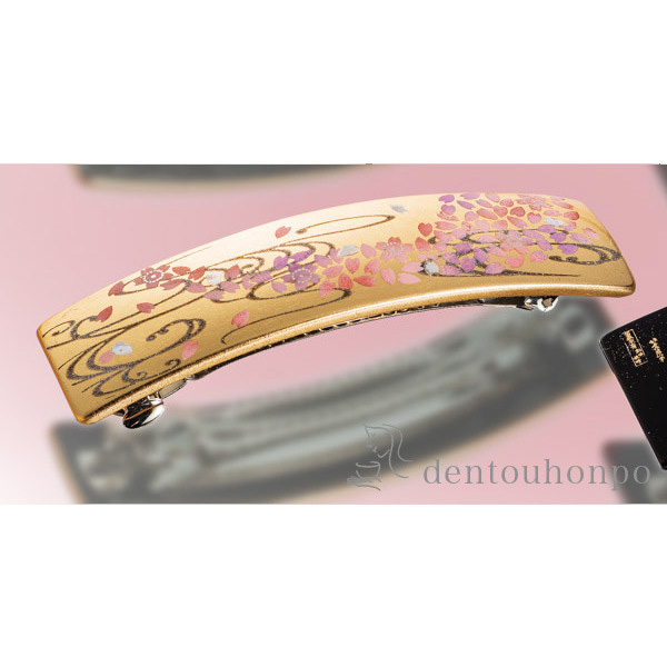 漆芸バレッタ長角 舞桜 金 桐箱入り ( 木箱名入れ有料 退職祝い 定年 髪留め 留袖 和装 おしゃれ 日本製 山中漆器 結婚 出産 )