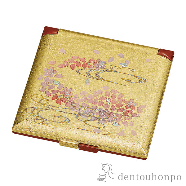ミニコンパクト 舞桜 ( 名入れ有料 退職祝い 定年 ハンドミラー コンパクト お土産 記念品 アンティーク 山中漆器 結婚 出産 )