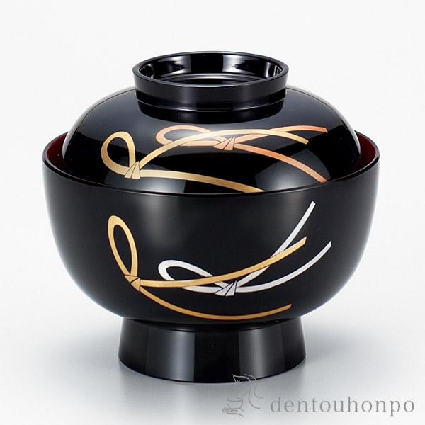 雑煮椀 結び 黒内赤 4.5号 蓋付き ( 初任給 プレゼント 母の日 雑煮椀 お椀 お吸い物 お雑煮 おすすめ 山中漆器 結婚 出産 )