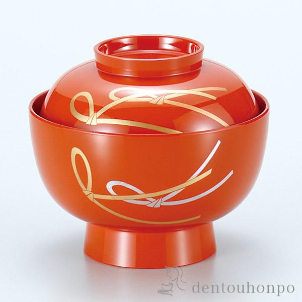雑煮椀 結び 総洗朱 4.5号 蓋付き 「即日発送対応」 ( あすつく 初任給 プレゼント 母の日 雑煮椀 お椀 お吸い物 お雑煮 )