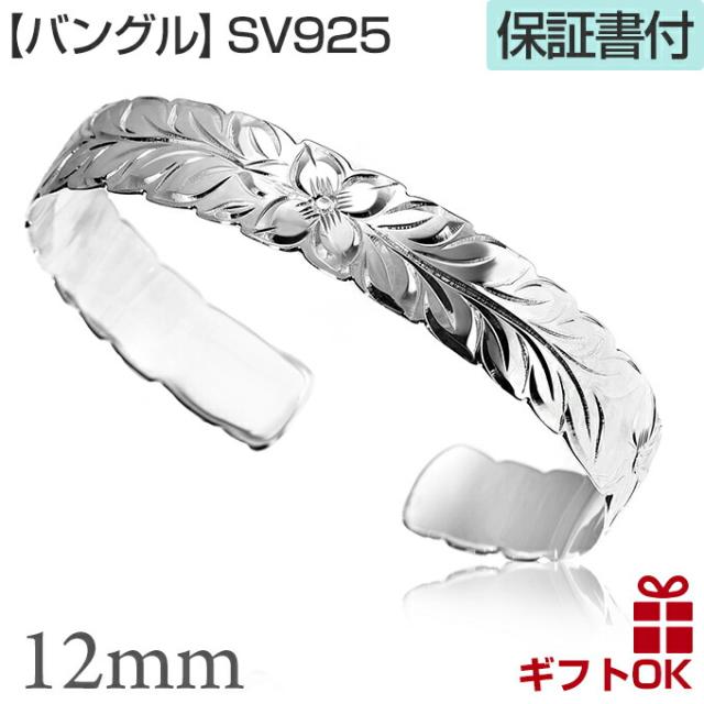 ハワイアンジュエリー バングル シルバー925 幅8ミリ 7 7 5 8 8 5 インチ 太め メンズ レディース プルメリア 花 レイ 花輪 波 マイレ マイレリーフ 葉 植物 クローズド カットアウト ギフト ギフト 金属アレルギー