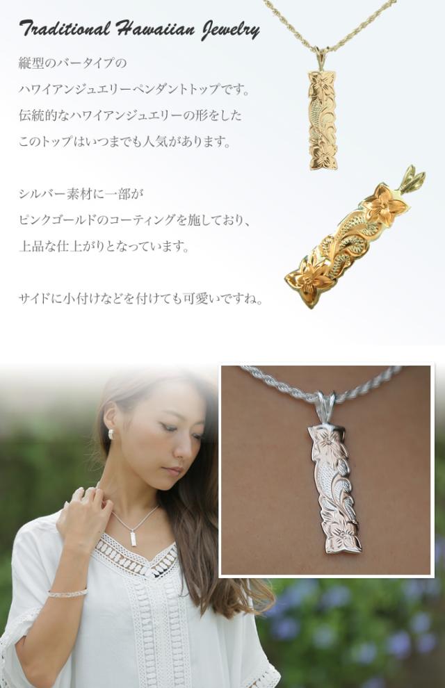 ハワイアンジュエリー ネックレス ペンダント プレート シルバー925 レディース メンズ 波 プルメリア バータイプ カットアウト トップ ピンクゴールド ペンダントヘッド プレゼント 送料無料 ギフト lmaハワイ 金属アレルギー