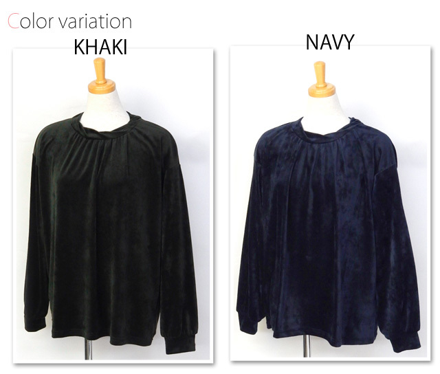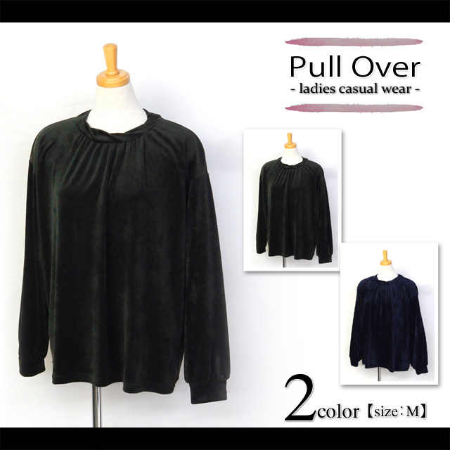 [特長]・長袖プルオーバー ・ベロア素材 ・襟元タック入り ・無地・婦人 ・レディース