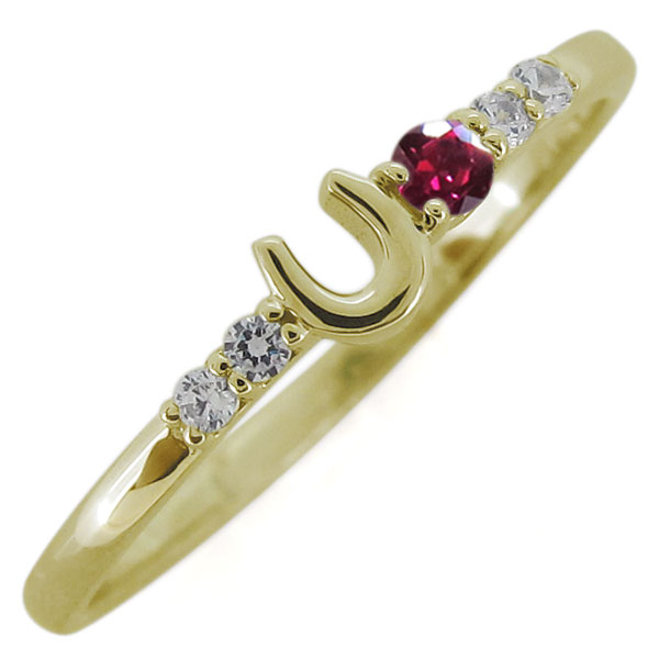 レディース ルビーリング ホースシュー 華奢リング 18金