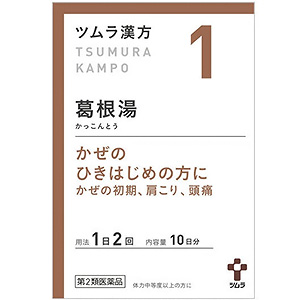 | 特徴 | 「根湯(かっこんとう)」は、漢方の原典である『傷寒論(しょうかんろん)』、『金匱要略(きんきようりゃく)』に記載されている漢方薬で、頭が痛い、首筋や背中がこる、熱がありさむけがするといった「かぜのひき始めの症状」に用いられるほか、「肩こり」、「筋肉痛」等にも用いられています。 『ツムラ漢方根湯エキス顆粒』は、「根湯」から抽出したエキスより製した服用しやすい顆粒です |