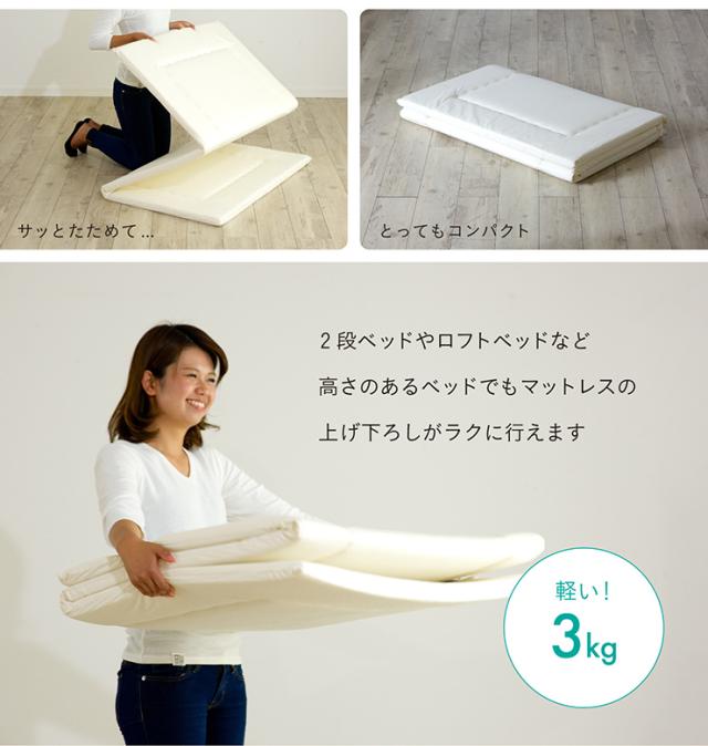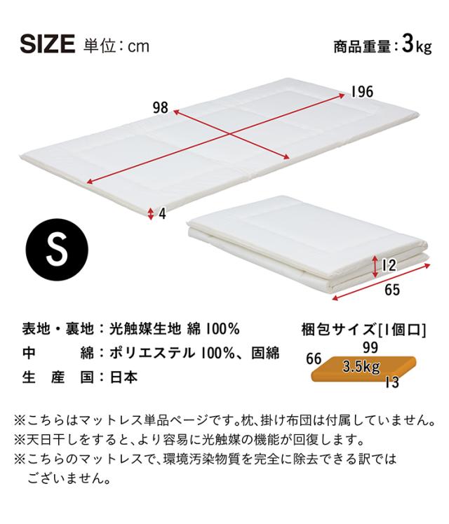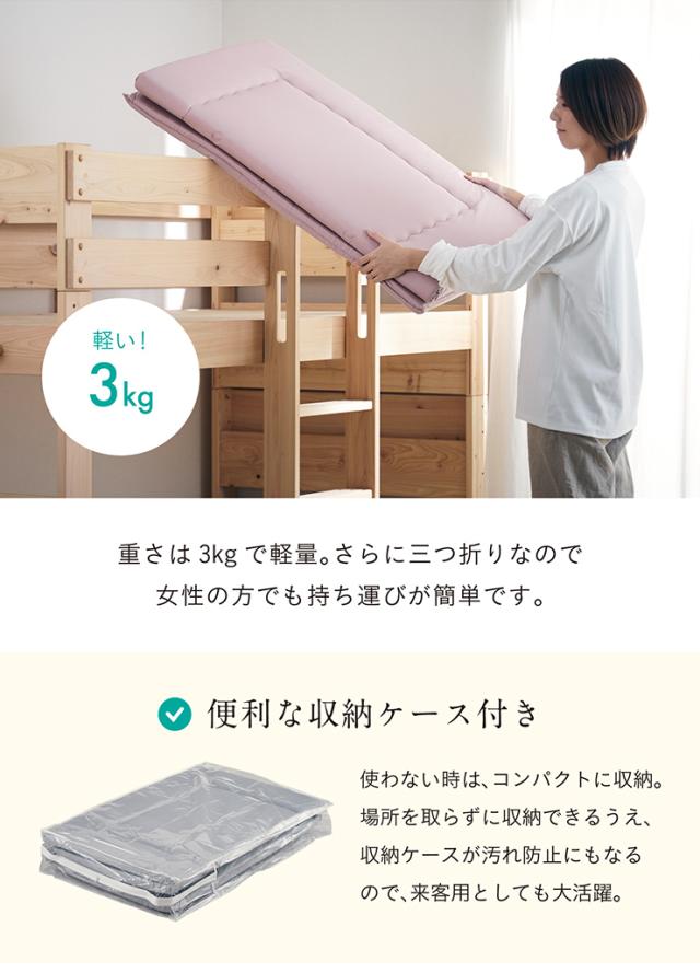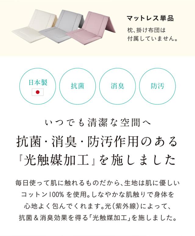 【日本製/2段、3段ベッドにぴったり】マットレス マット シングルサイズ シングル 三つ折り 折りたたみ 二段ベッド用 三段ベッド用 ロフトベッド用 システムベッド用 光触媒 toco matto(トコマット) S 5色対応