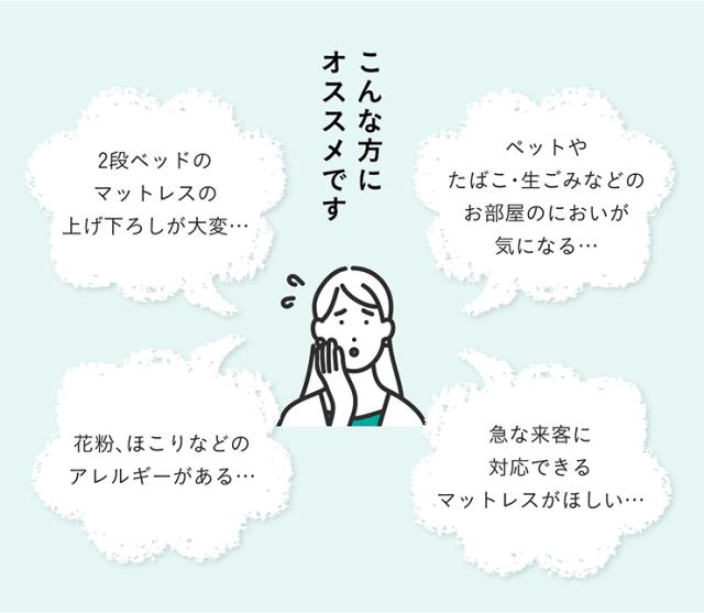 ※こちらはマットレス単品のページです。枕、掛け布団は付属していません。