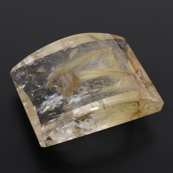 なんとも個性的な表情をもつ、非常に綺麗なルチルクォーツの磨き原石です。