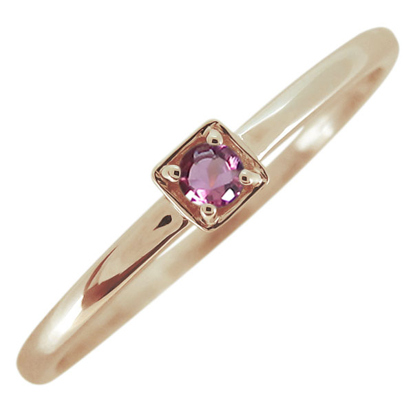 ピンクトルマリンリング シンプル 華奢 指輪 一粒リング スクエア 10金