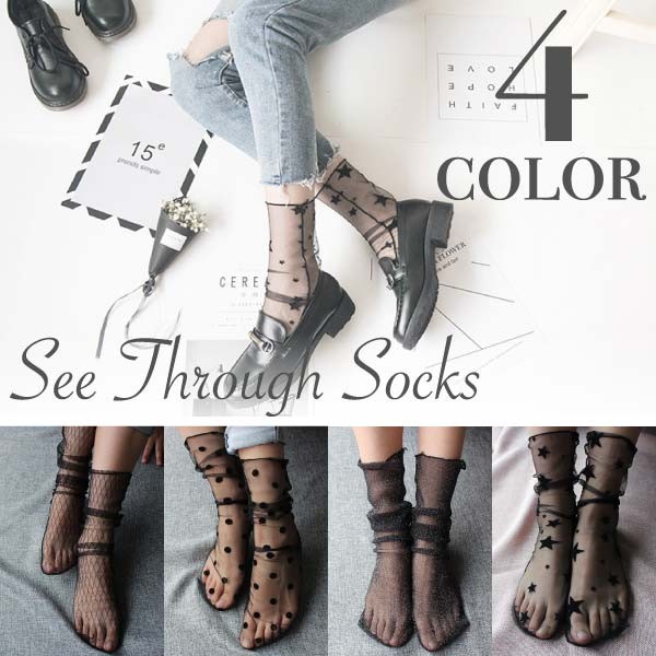 靴下 シースルー フロッキー ソックス シアー ルーズソックス チュール オーガンジー 透け素材 透け感 今コレ 送料無料 880601