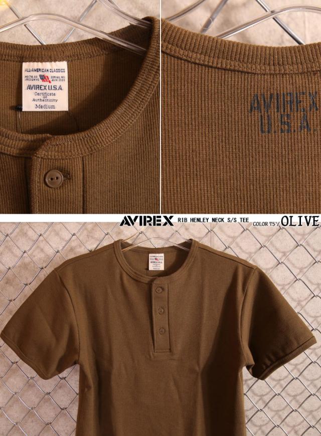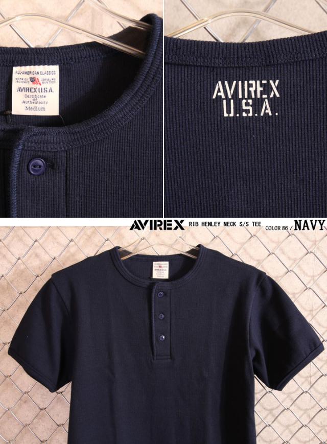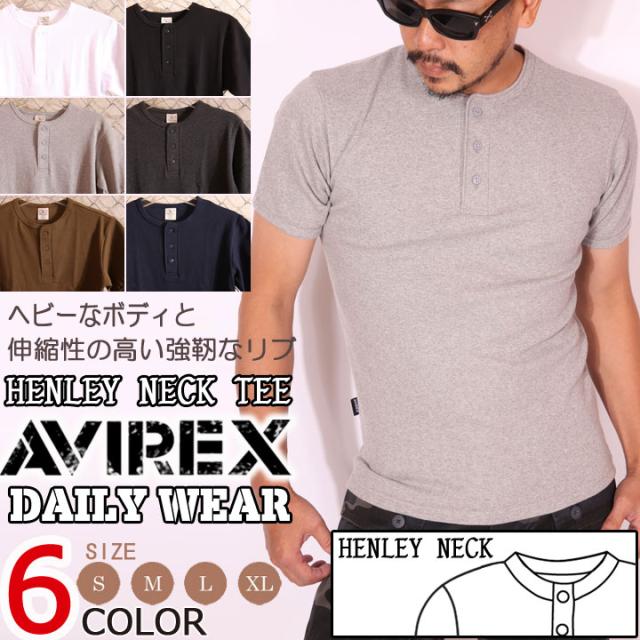 アビレックス AVIREX 半袖 Tシャツ ヘンリーネック 無地(6143504)【メール便発送】※日時指定・代引き不可 アヴィレックス