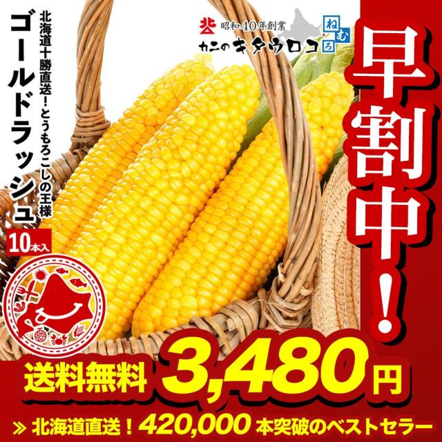 【予約】42万本突破! とうもろこしの王様 朝もぎで生でも食べられる♪ 北海道産 十勝直送 ゴールドラッシュ 10本入 送料無料 指定日不可 同梱不可 お取り寄せ トウモロコシ スイートコーン