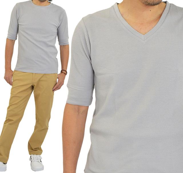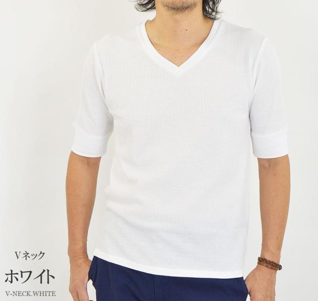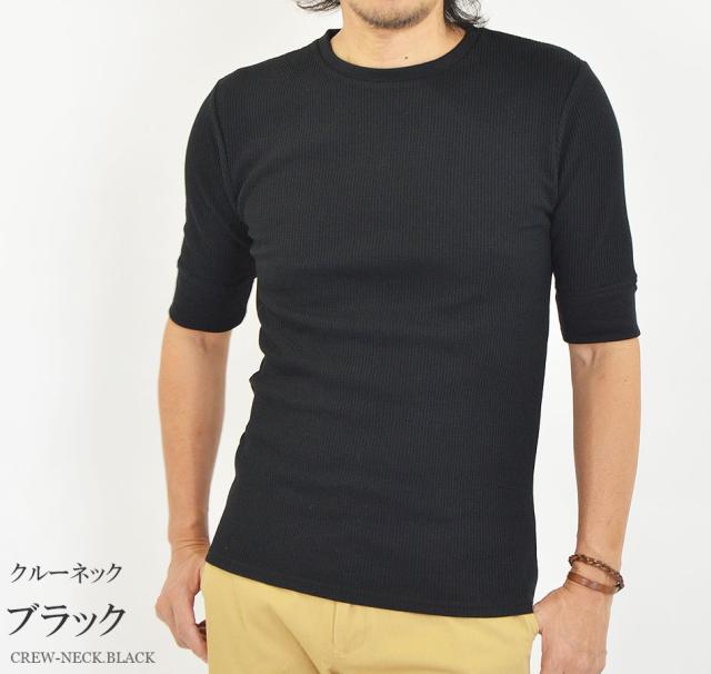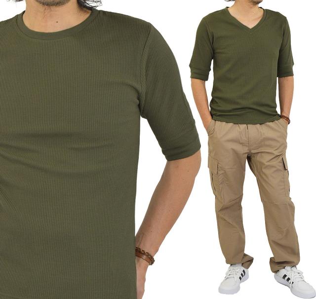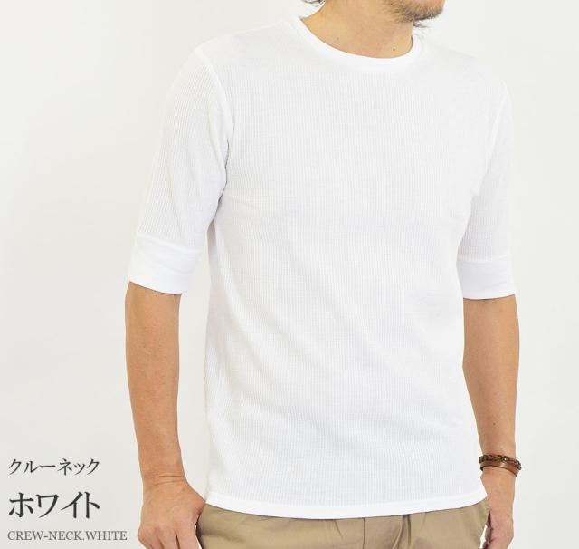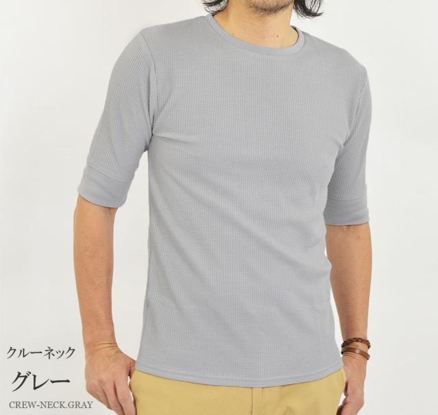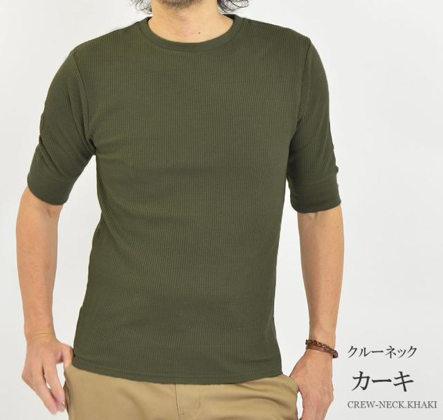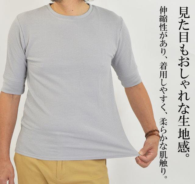Tシャツ メンズ 半袖 無地 5分袖 半袖Tシャツ サーマルシャツ ワッフルTシャツ ワッフル 生地 五分袖 カットソー 七分袖と半袖の中間丈 5分袖Tシャツ 無地Tシャツ 五分袖Tシャツ 肘丈 白 黒 紺 グレー カーキ 綿 シンプル ベーシック