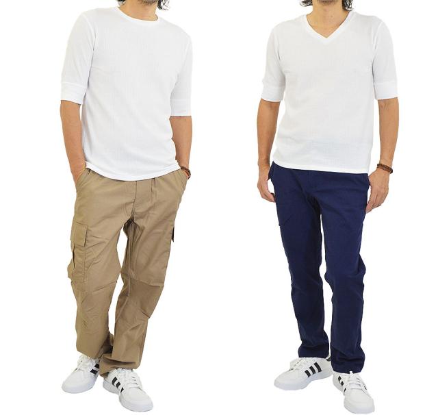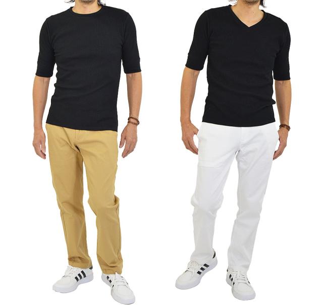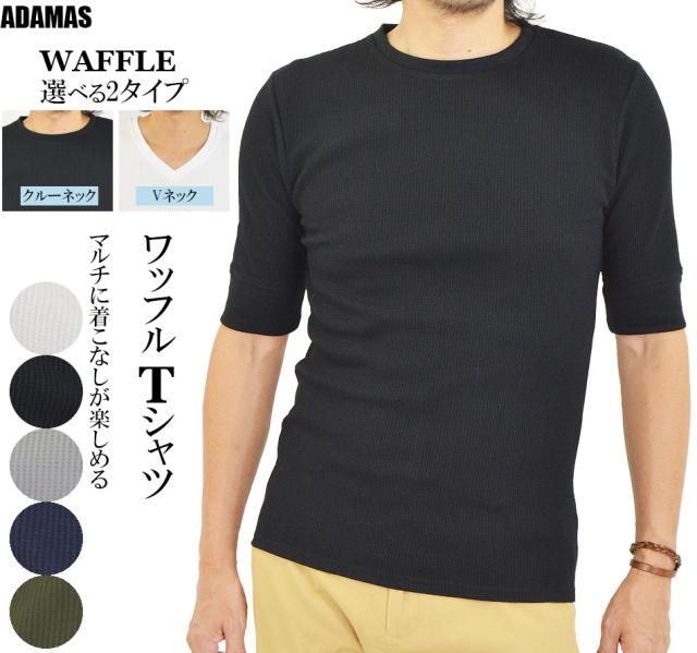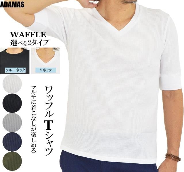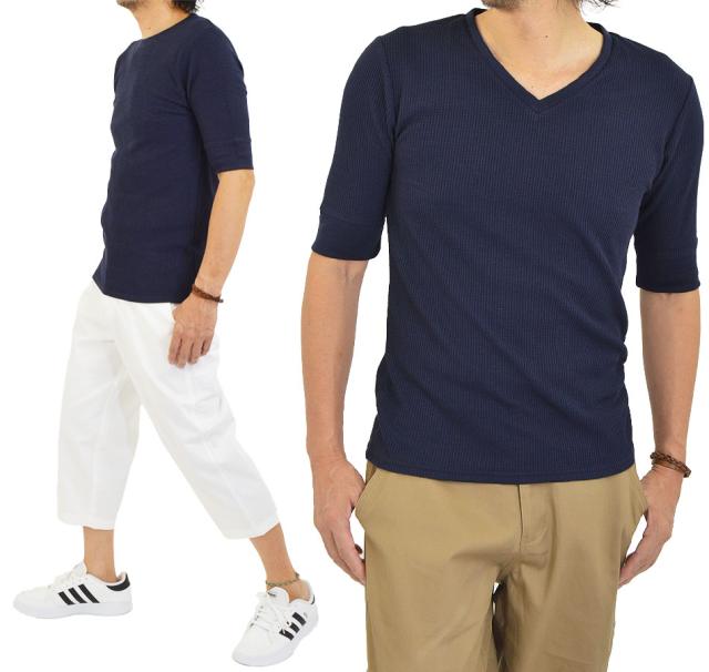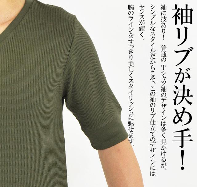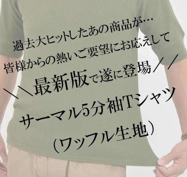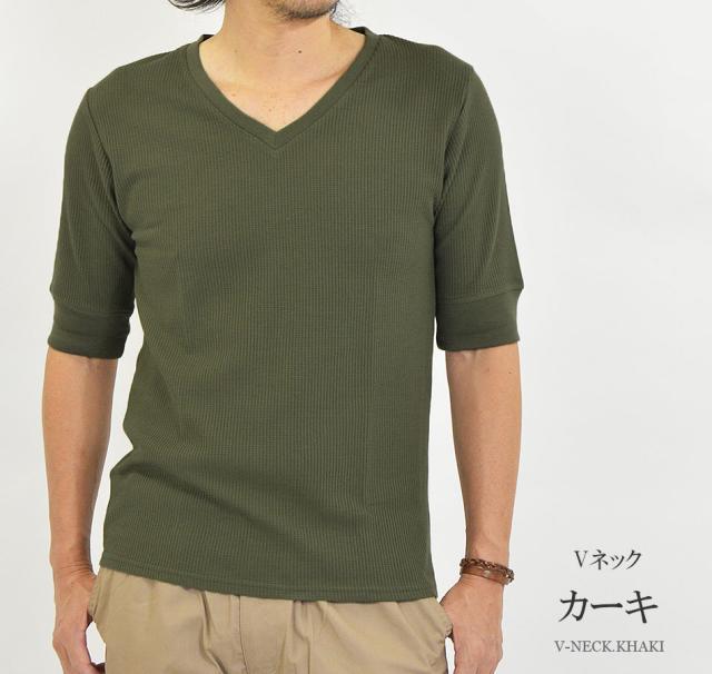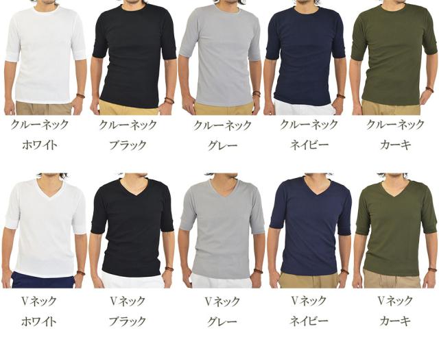 Tシャツ メンズ 半袖 無地 5分袖 半袖Tシャツ サーマルシャツ ワッフルTシャツ ワッフル 生地 五分袖 カットソー 七分袖と半袖の中間丈 5分袖Tシャツ 無地Tシャツ 五分袖Tシャツ 肘丈 白 黒 紺 グレー カーキ 綿 シンプル ベーシック