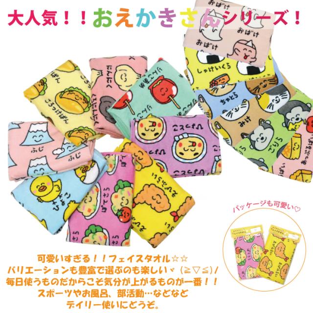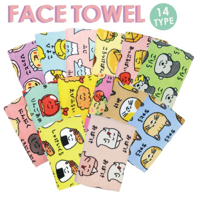 【2枚までメール便280円対応】フェイスタオル プリント 14種類 タオル ロングタオル コットン 綿100% おもしろ雑貨 生活雑貨 34×75cm【キャラクター 遠足 子供用 通園 通学 入学式 キッズタオル】┃