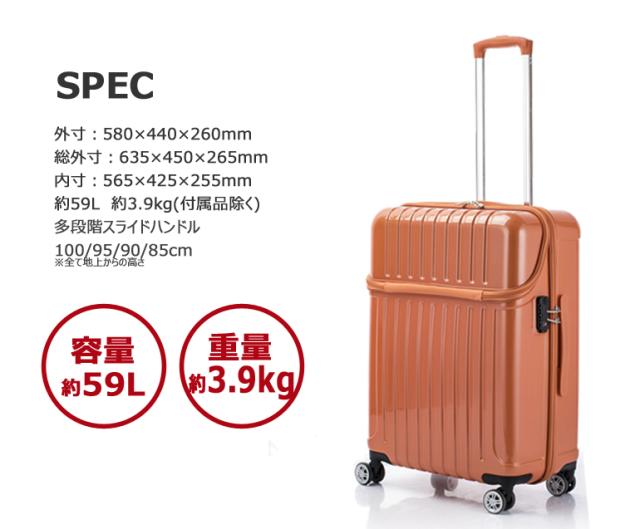 スーツケース トップス アクタス Mサイズ トップオープン topopen TSAロック 軽量 4輪 ジッパーハード ACTUS キャリーケース