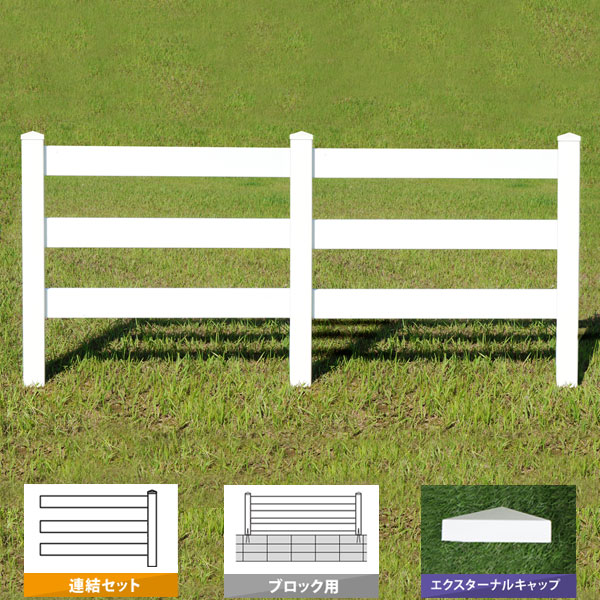 フェンス ホワイト バイナルフェンス 樹脂 PVC 幅200cm 高さ105cm 連結セット ブロック用 EXキャップ 3RR1050B-EC/3RR1050B-EL