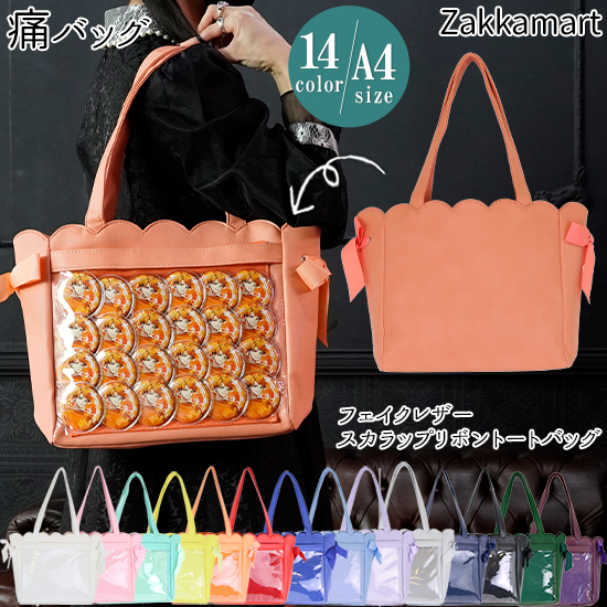 フェイクレザースカラップリボントートバッグ 痛バック 痛バ トート 痛バ zakkamart ザッカマート