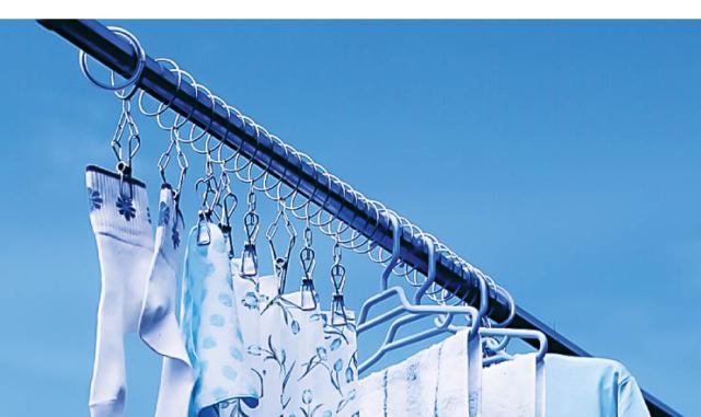 物干し竿に取り付けるだけ!でハンガーを固定することができ、風が吹いても洗濯物がくっついたり、離れたりしません。