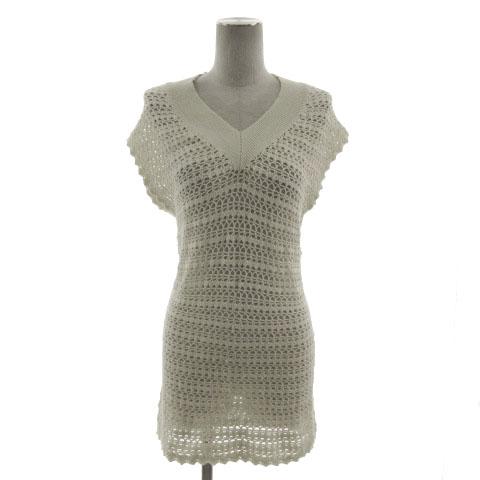 【中古】グレースコンチネンタル ニット チュニック丈 Vネック ノースリーブ かぎ編み コットン混 ラメ アイボリー 36