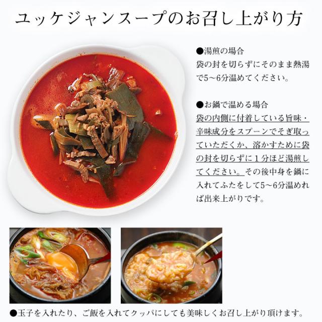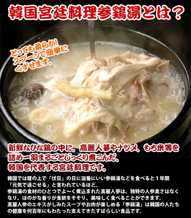 韓国スタミナスープの代表・サムゲタンとユッケジャン。 本サムゲタンは化学調味料、保存料など一切入っていない「無添加食品」。鶏を丸ごと煮込んで作るのでイミダペプチドも美味しく摂取出来ます。 ユッケジャンは牛肉、ねぎ、平茸など具だくさん。辛いけど旨さもバツグンです。, |