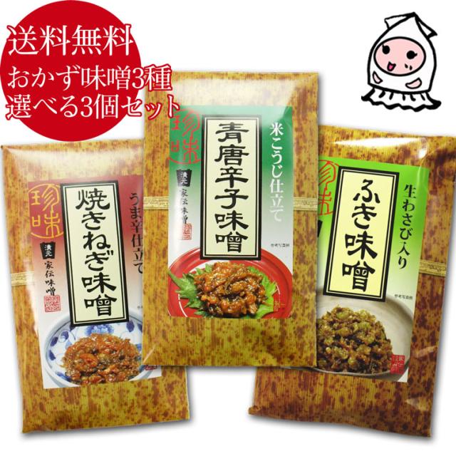 ご飯のお供 薬味 珍味 おかず味噌 みそ 選べるお得な3個セット メール便送料無料