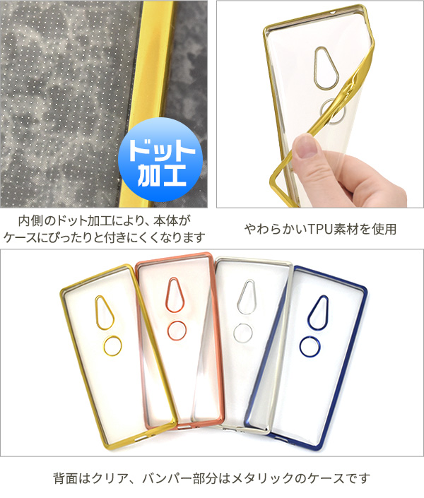 スマホケース Xperia XZ2 SO-03K SOV37 702SO用 メタリックバンパー ソフトクリアケース 背面 TPU 保護 スマホ カバー